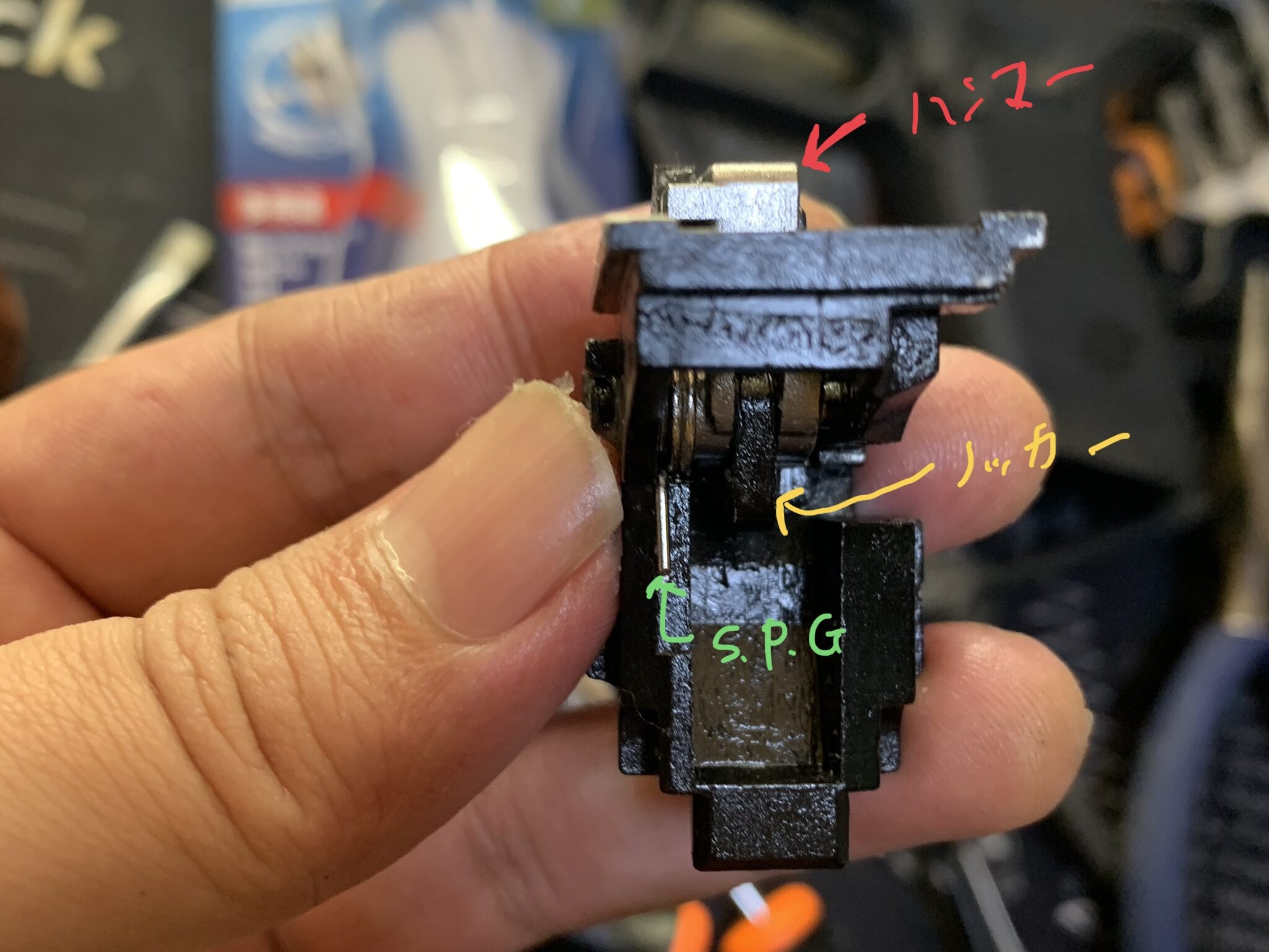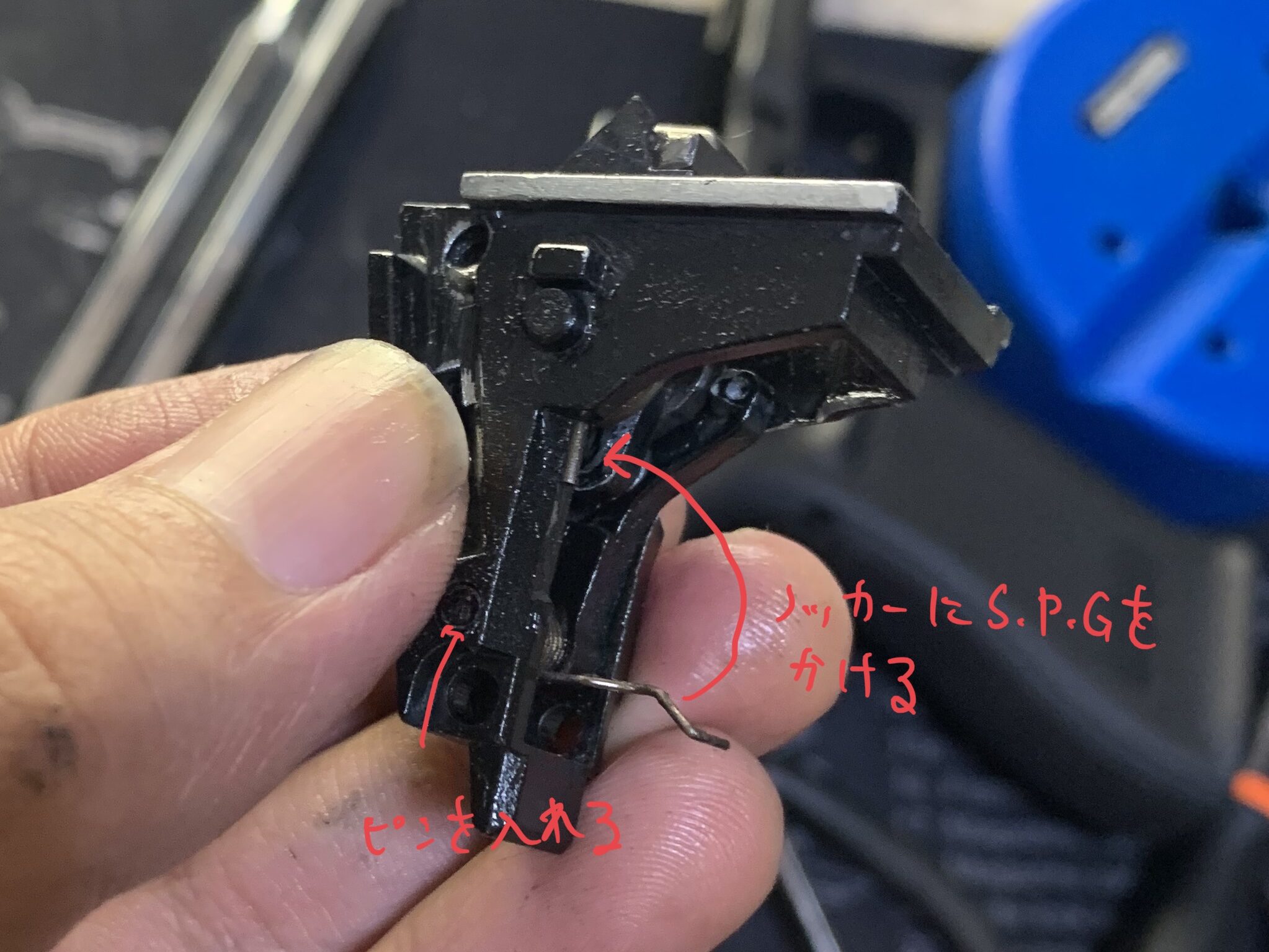 この状態でピンを入れてシアーSPGをノッカーに掛けます。