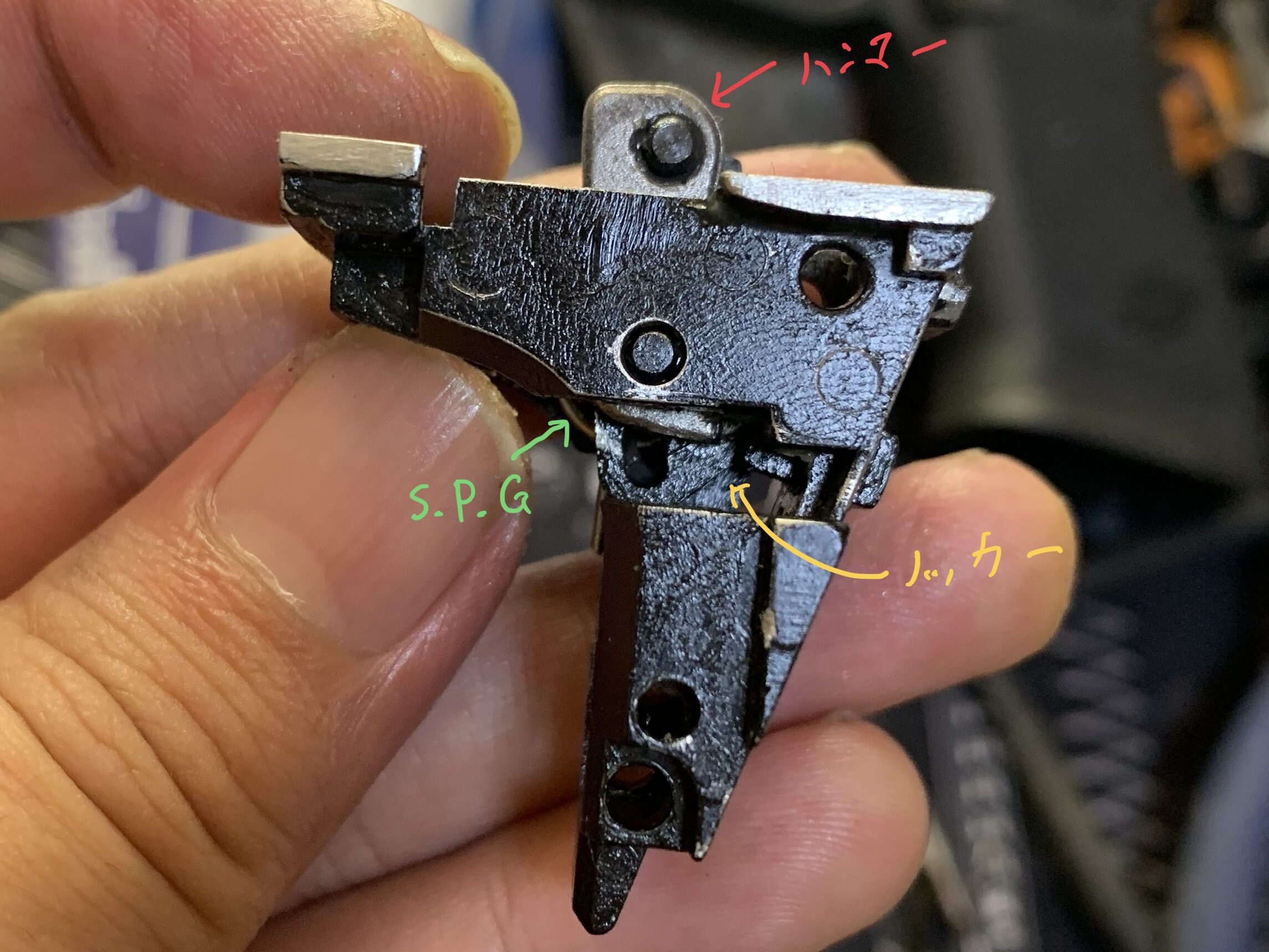 これでハンマーユニット、トリガー周りが取り外せます。
