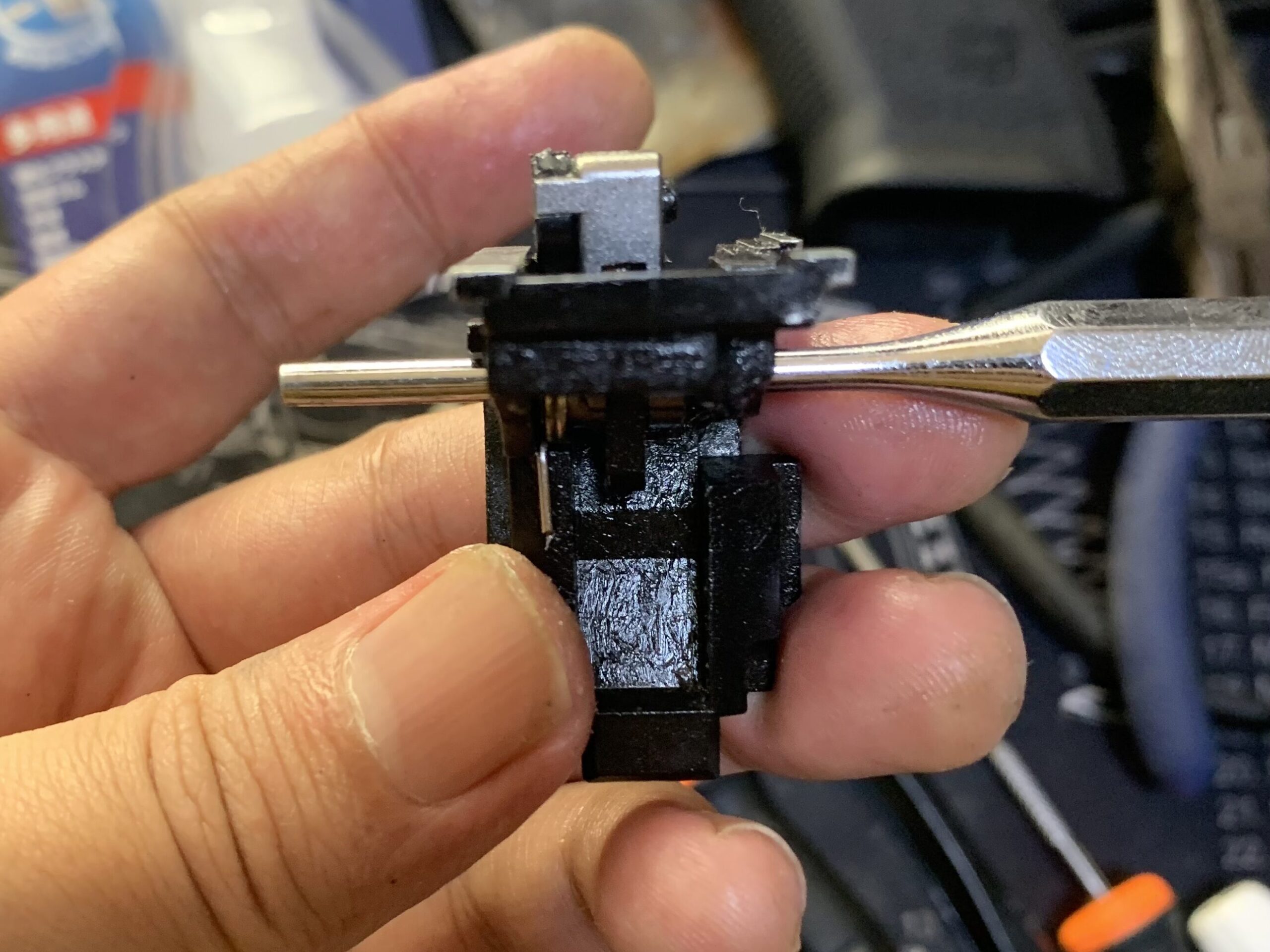 やり方はマイナスドライバーでスプリングだけを押し下げて位置をずらす感じで動かします。