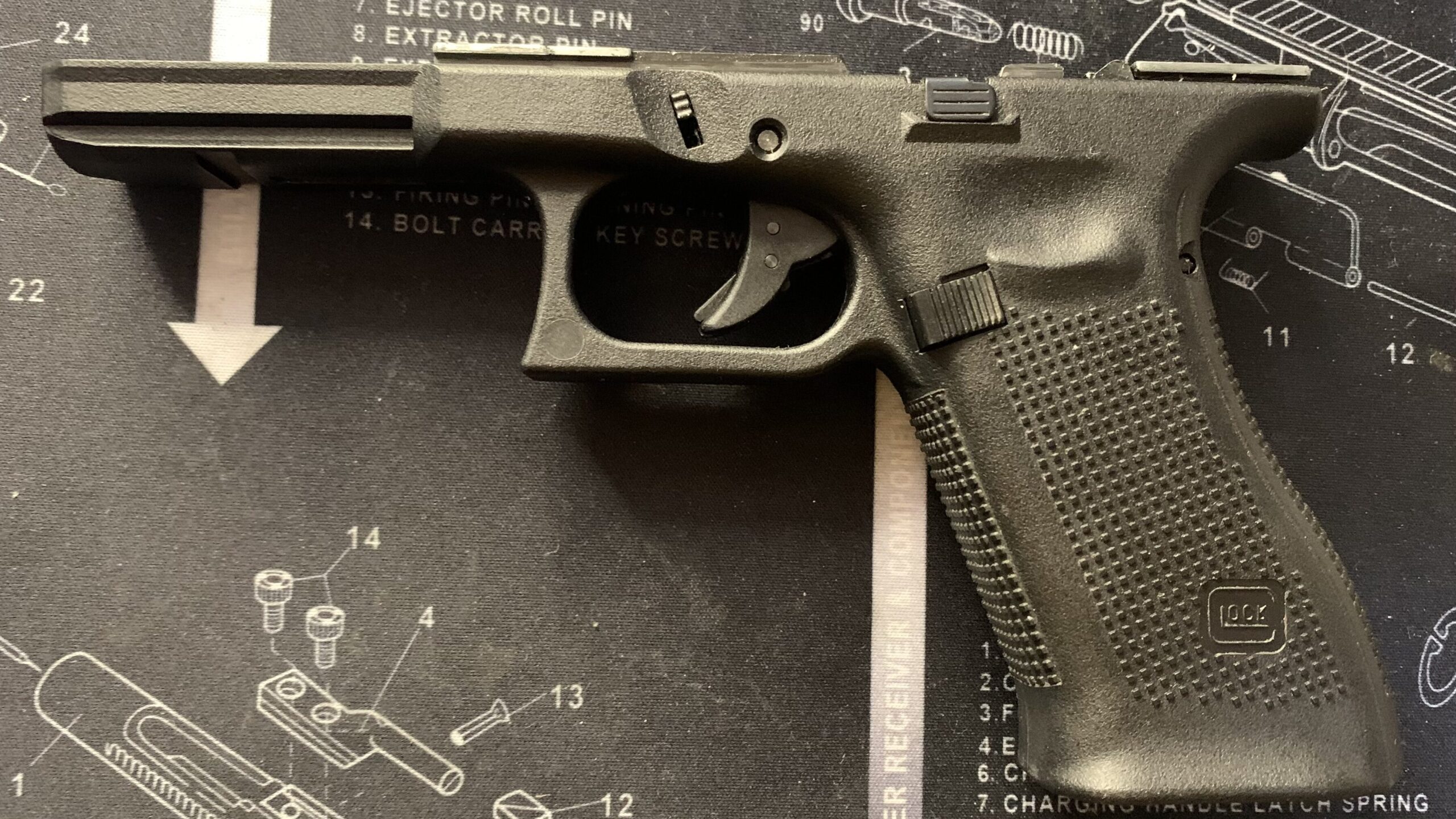 今回の交換対象部品はハンマーなのでシャーシだけを分解していきます。今回の作業ではハンマーを起こしていた方が進めやすいのでトリガーを一度、引いておくことをオススメします。