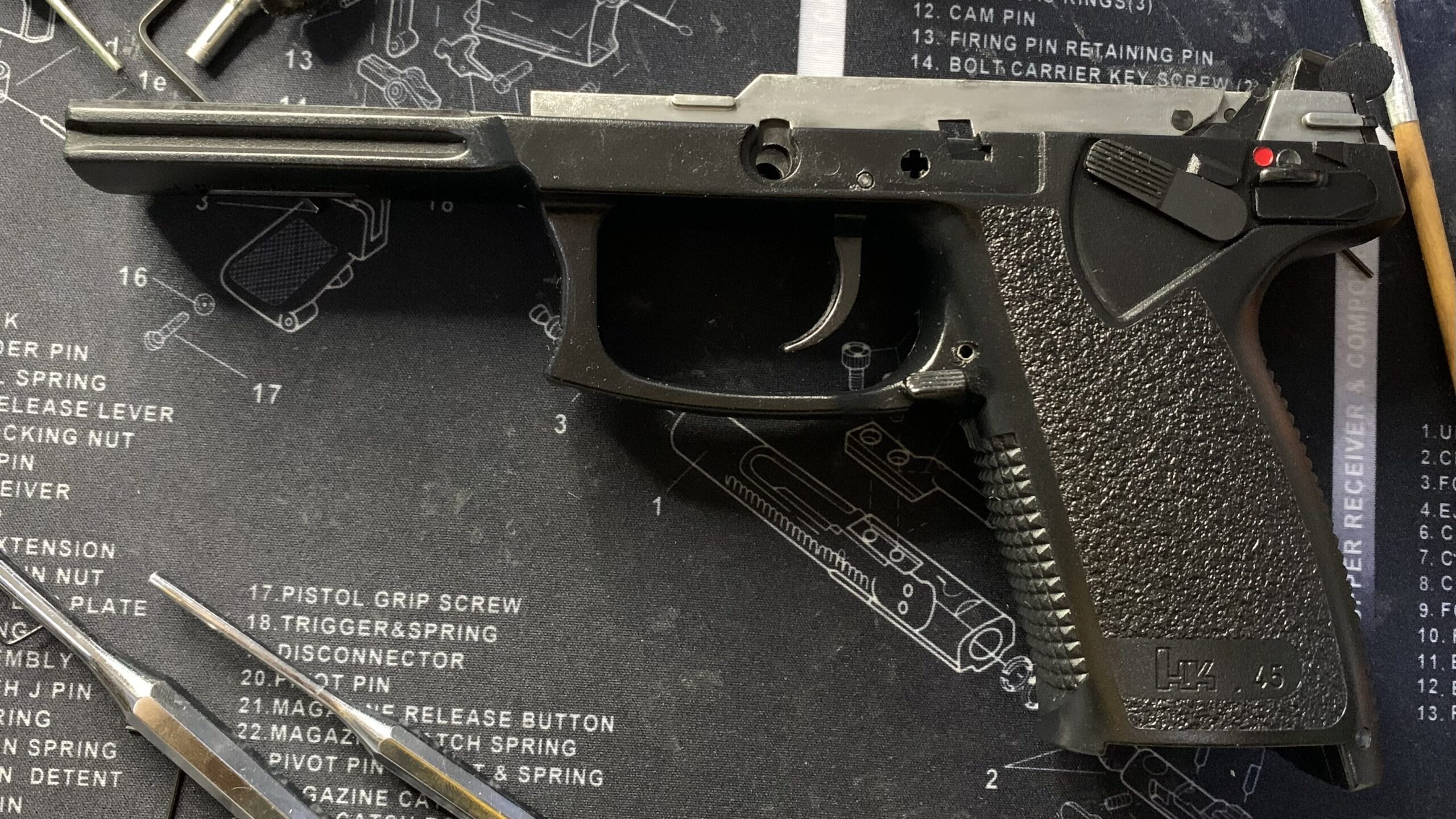 前回はKSC Mk23 ソーコムピストル CO2 ABSの初期ロット品のフレームの分解をしました。