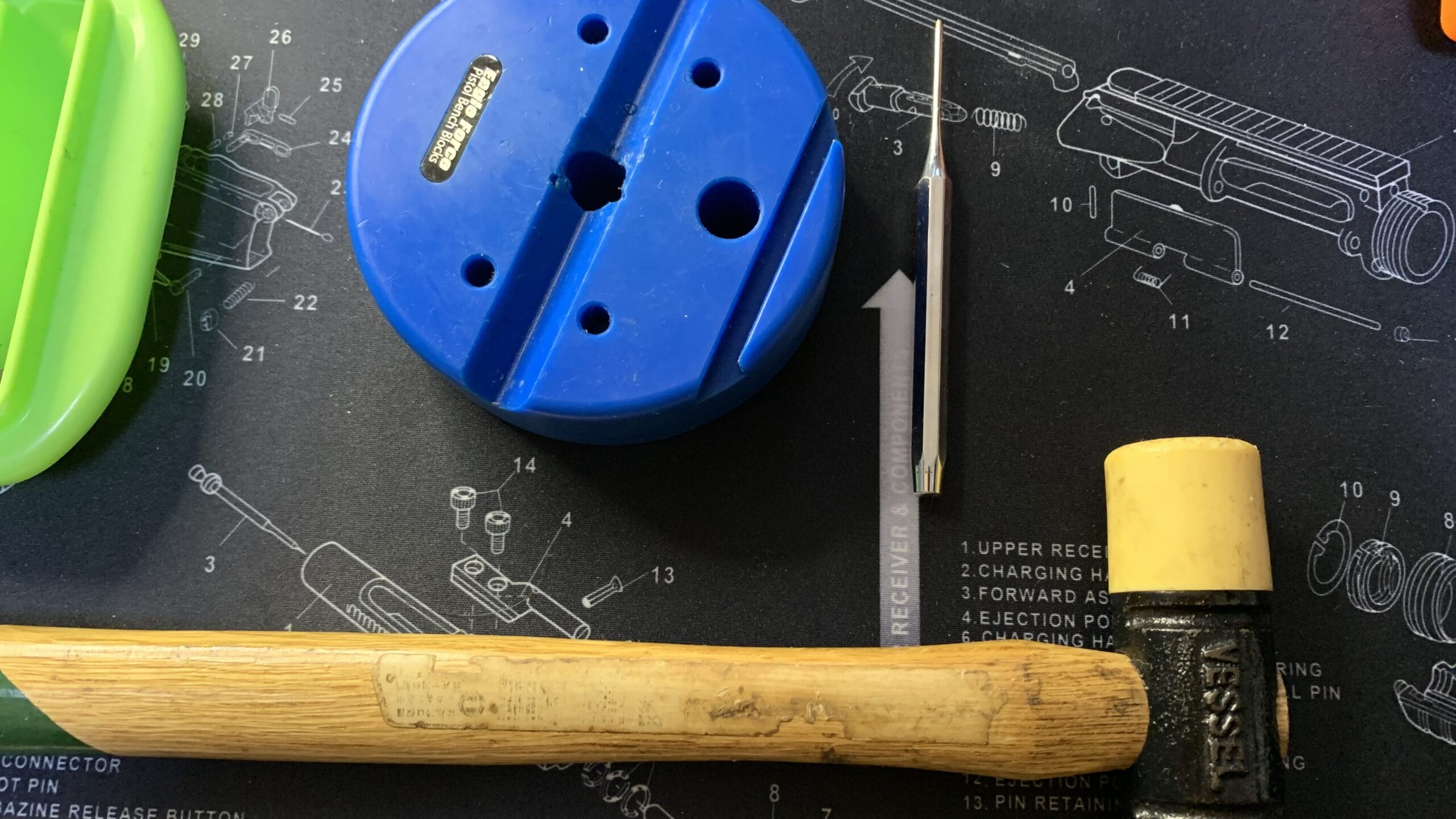 このようなピンを丁寧に外すためには次の写真のようなピンポンチ、ブロック、プラハンを使うことをお勧めします。