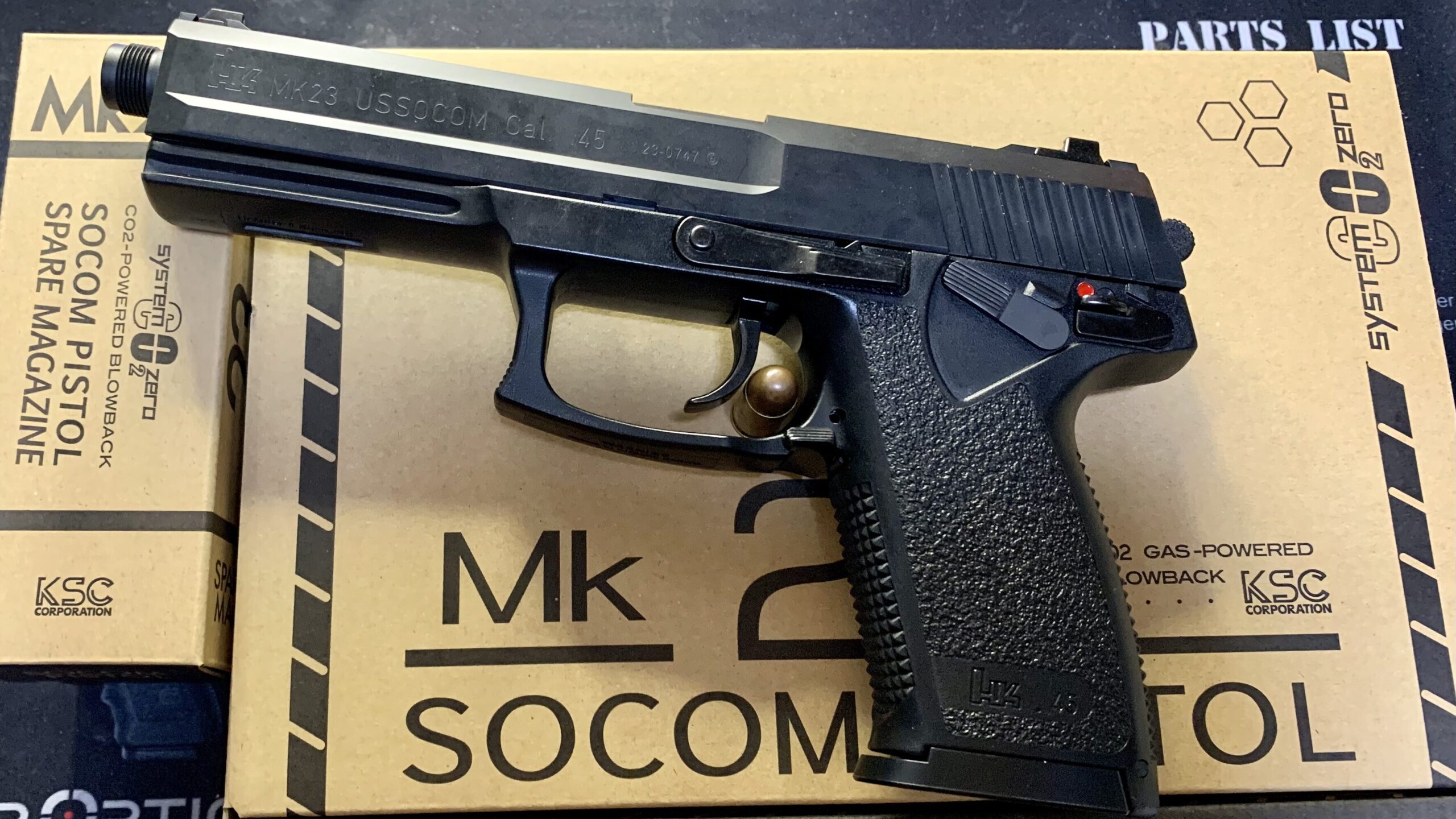 ここ1〜2年ほどKSCさんは過去のモデルの再生産がメインで完全な新モデルの販売がほとんどないなかで2023年3月上旬に突如、Mk23 ソーコムピストルのCO2モデルの販売のお知らせと予約の開始が始まりかなり衝撃を受けて速攻で予約して手に入れました。