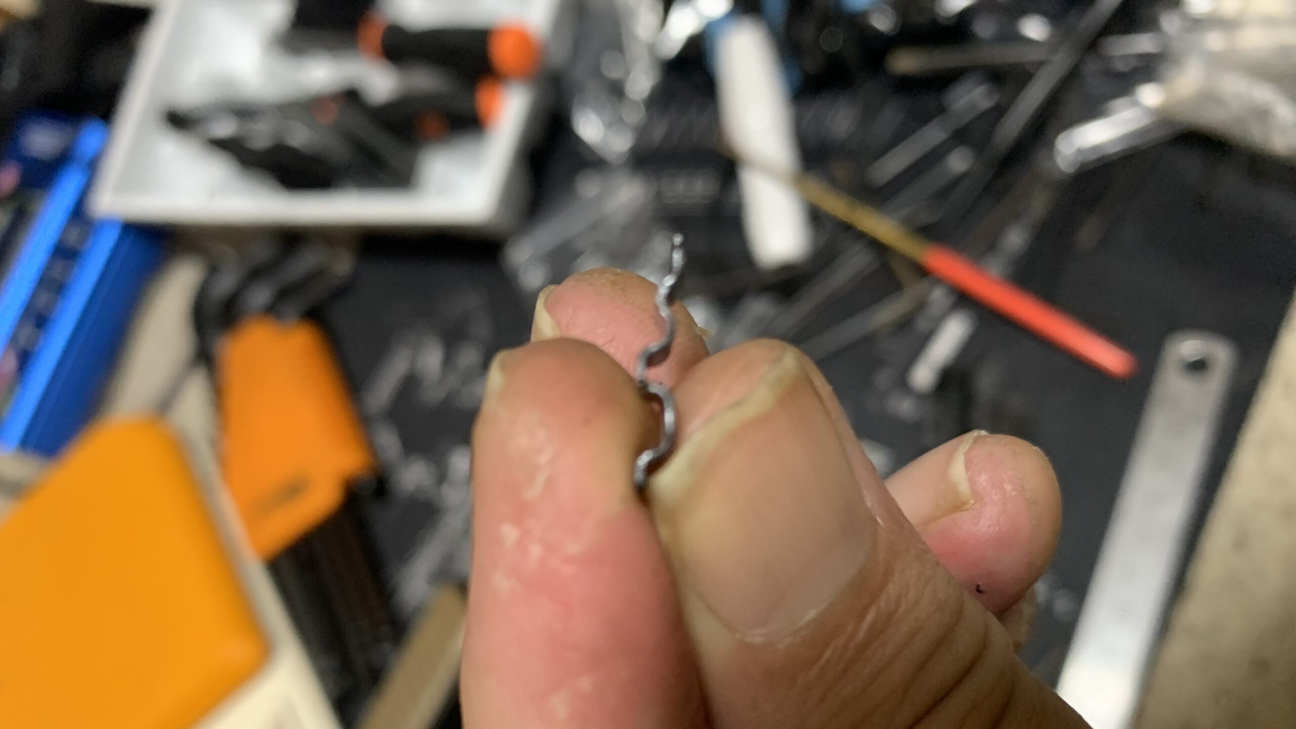 そうするとピンの頭が出てくるのでペンチで引っこ抜けば分解できます。
