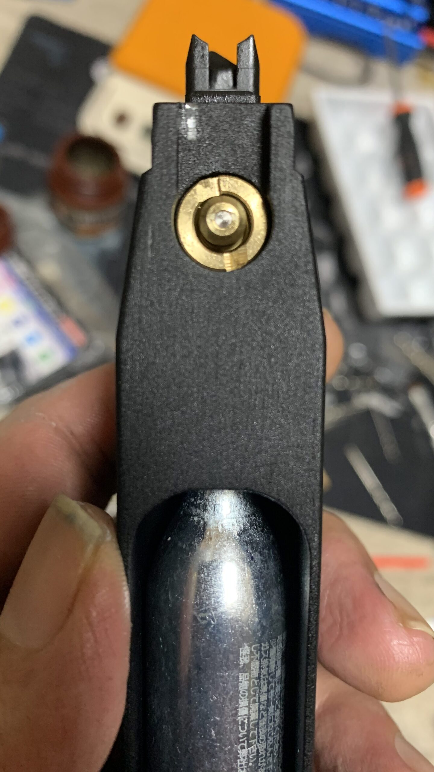 これが初速が低い原因となります。なのでカスタムでオリフィスの穴を加工して初速を上げて行きます(法の範囲内が大原則)。