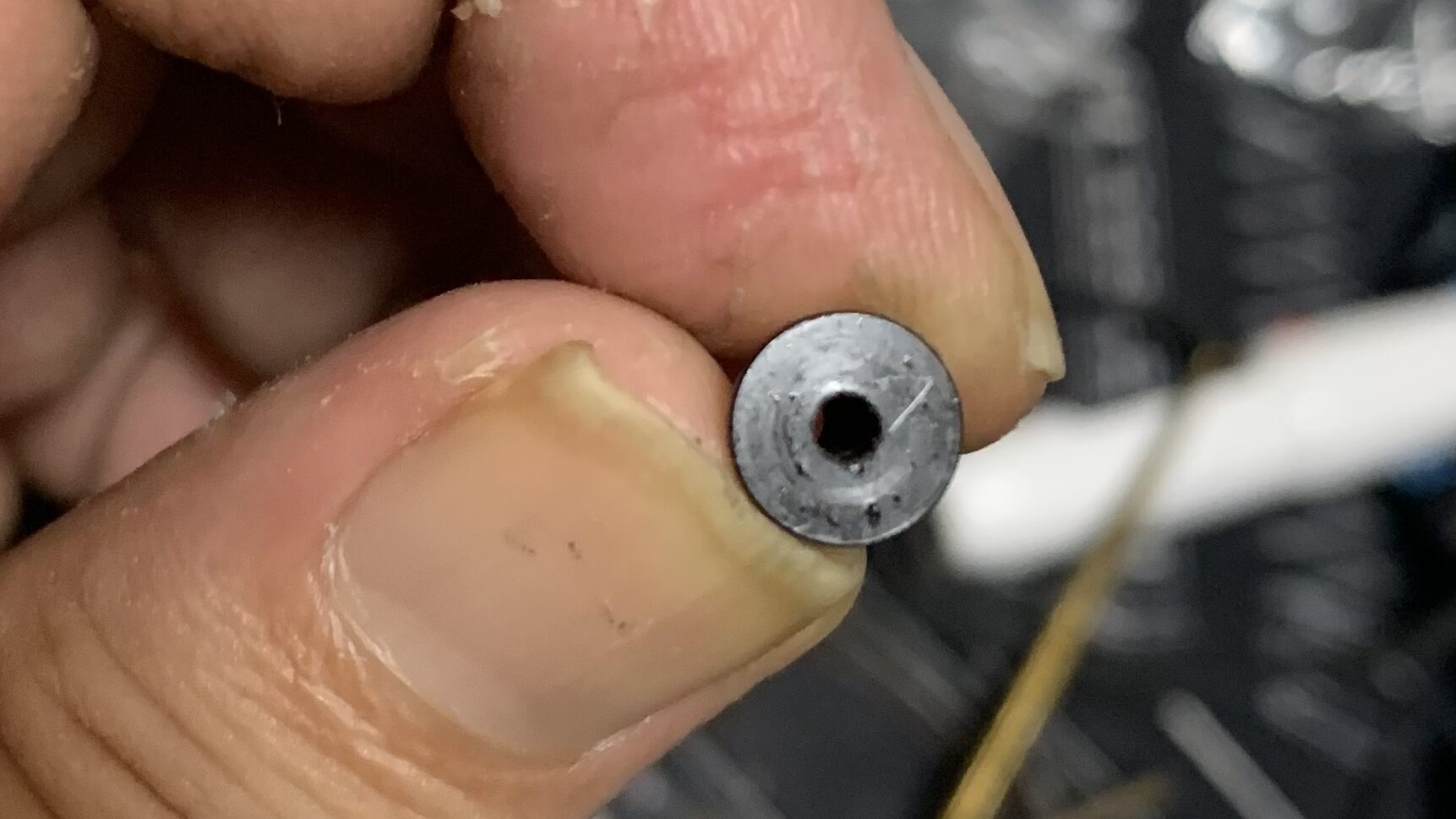 ノズルを見ていくと改造防止処置でフローティングバルブを抑えているピンが抜けないようになっていました。