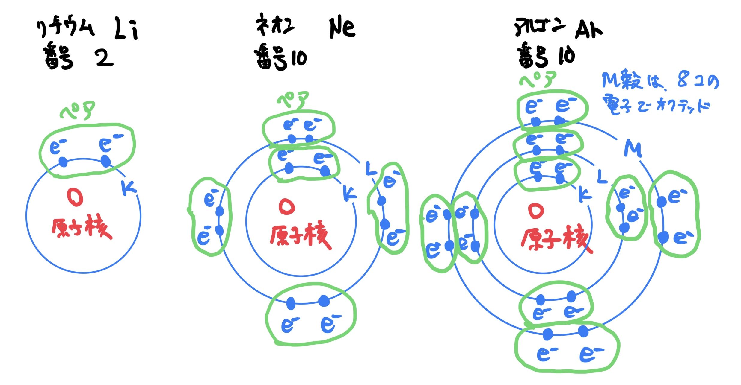 つまり電子の挙動は、電子殻を満席にするのと同時に必ずペアになろうとする挙動を示す。