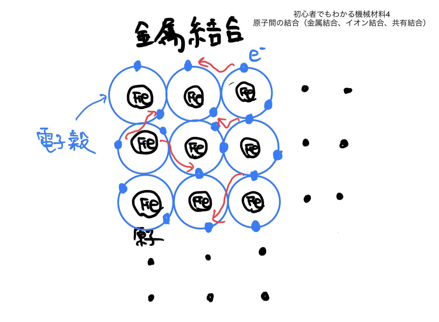 この電子が電子殻を共用する作用によって各金属原子が結合して物質になる。