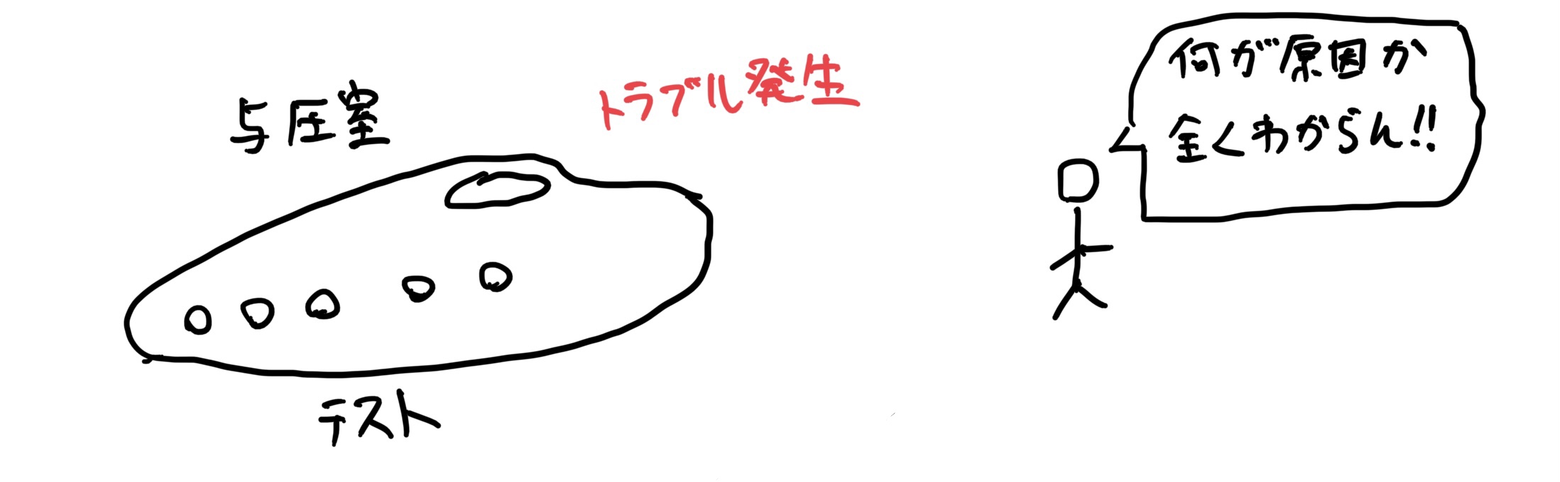 つまりこの段階で考えることは気圧XX[atm]とかの数字は一切、関係なく、とにかく密閉空間に一定の圧力が加えられるかどうかだけに着目する。